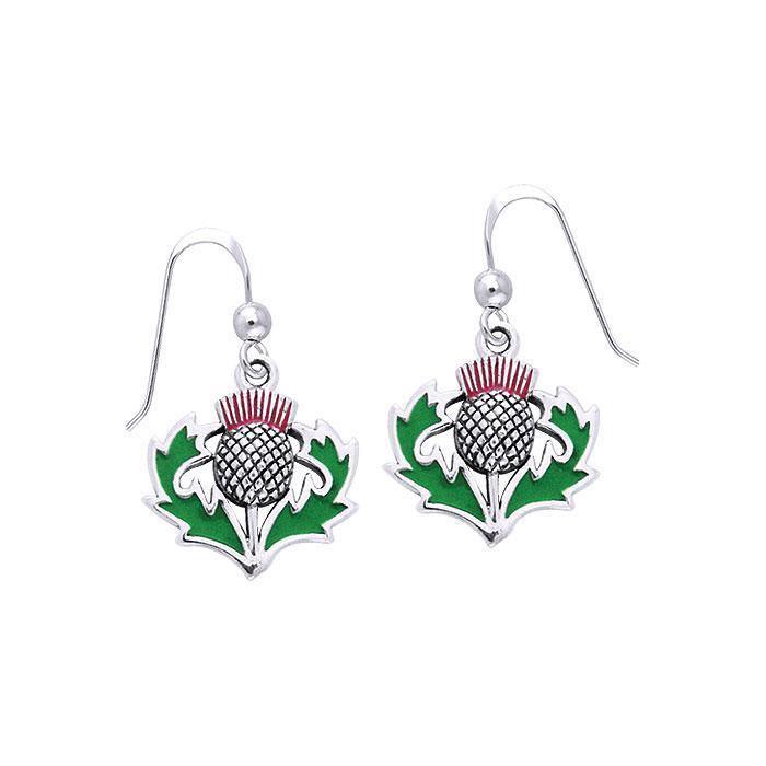 The Celtic Alba Thistle has come a long way with its delicate flower heads, sharp thorns, and its defiant ability to flourish. It is a resilient symbol which has always bloomed across a beautiful landscape. Throughout Celtic regions, thistle represents bravery, devotion, durability, strength, and determination celebrated in this sterling hook earrings in green and pink enamel. Peter Stone honors the sacred place the thistle affirms in Celtic traditions and its strong recognition all over the world.