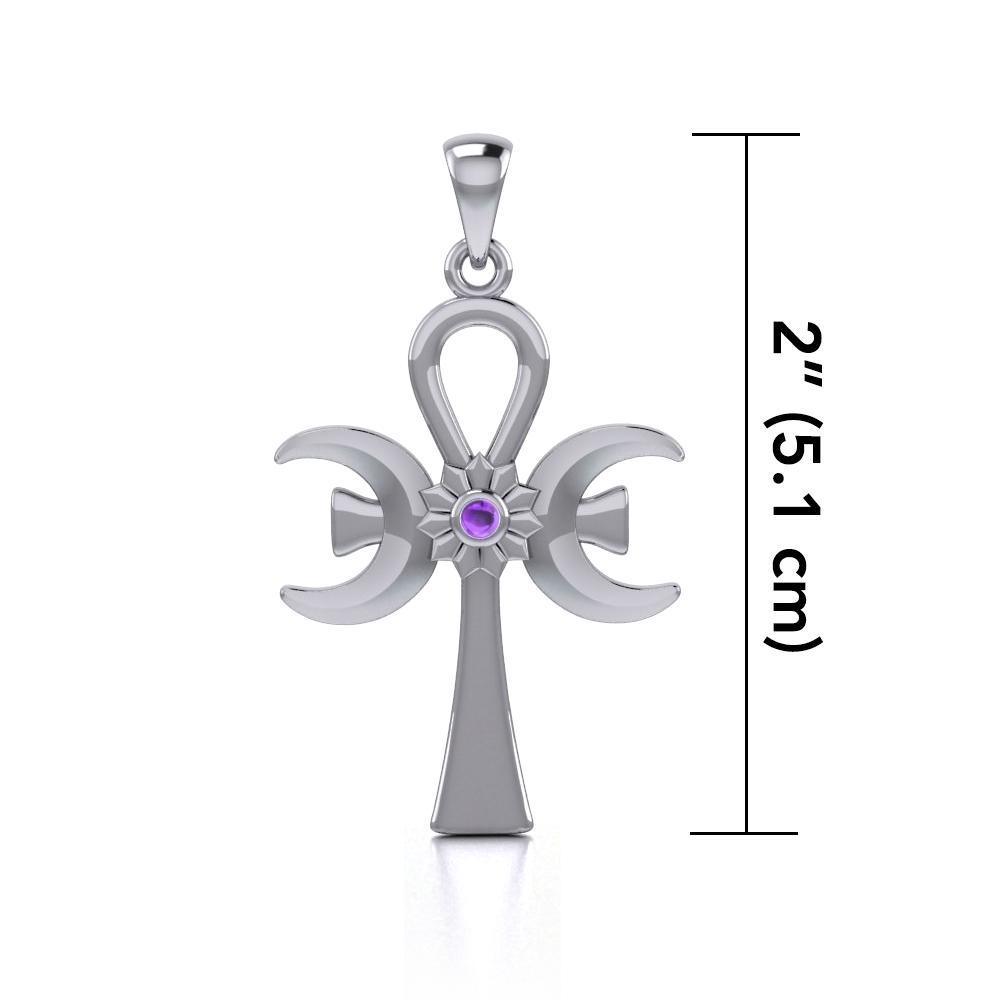 The cross of life ~ Sterling Silver Triple Goddess Ankh Pendant with Gemstone TPD5141