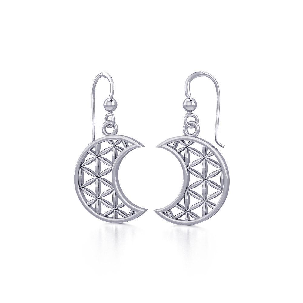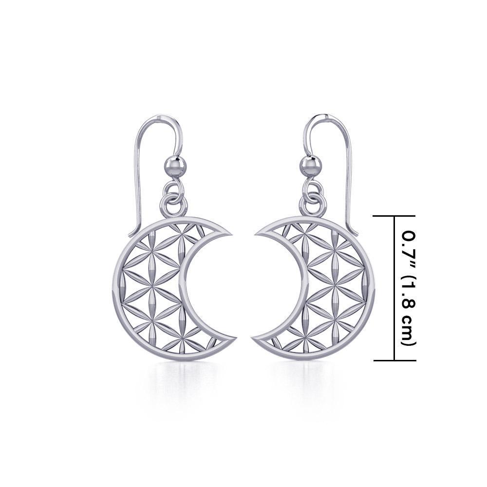 The Flower of Life in Crescent Moon Silver Earrings TER1780