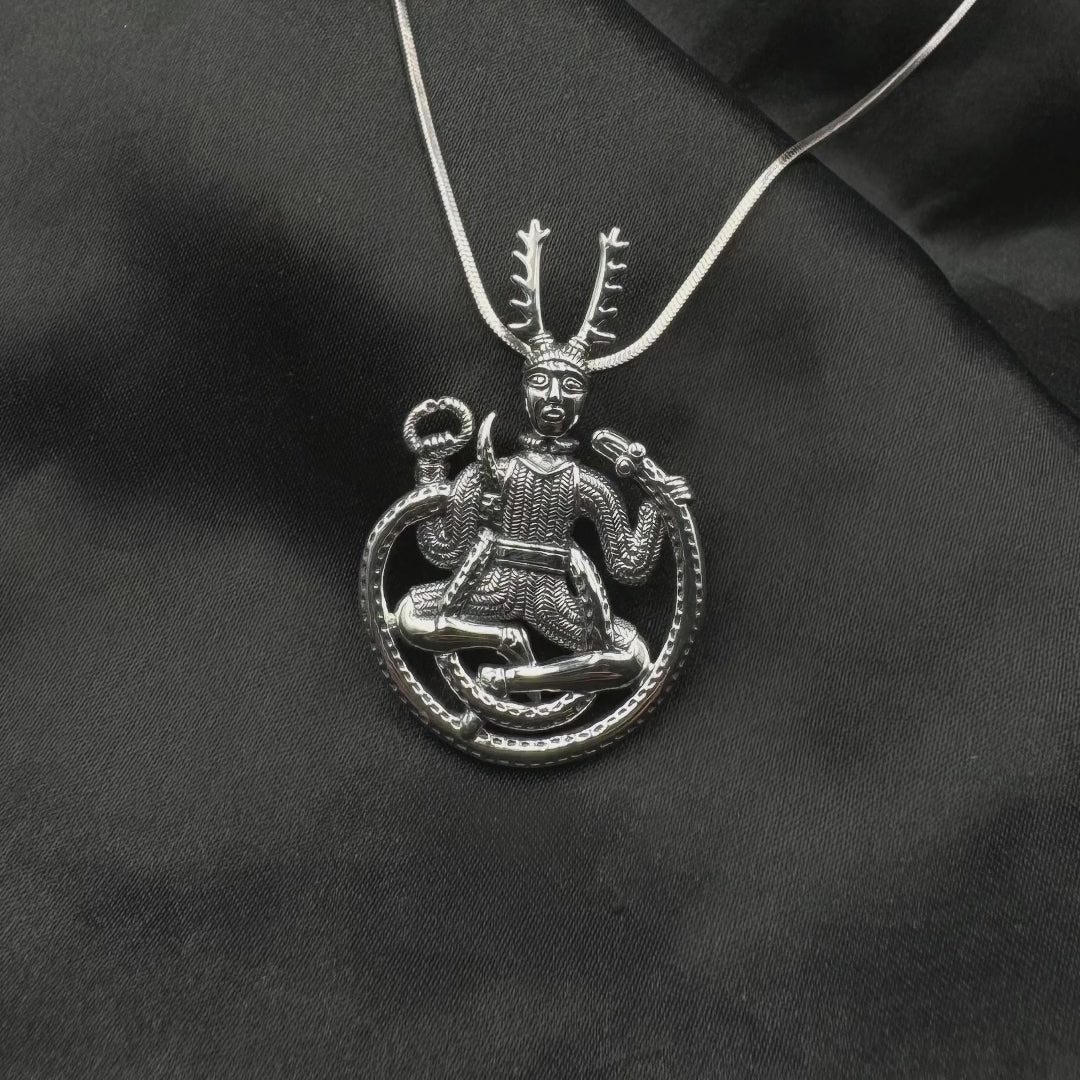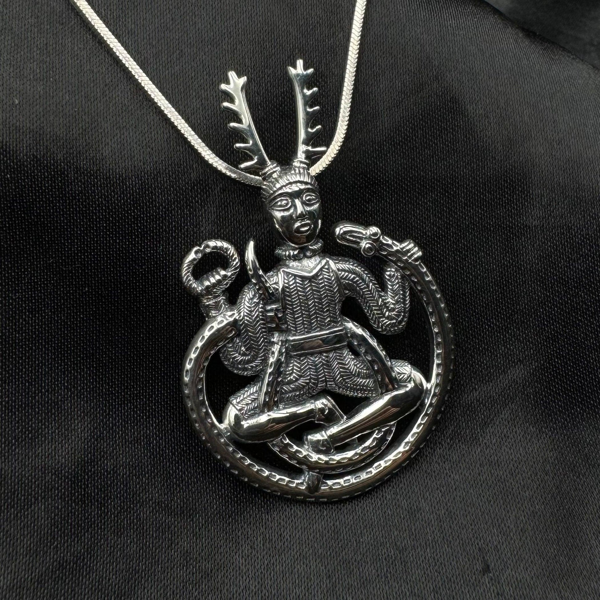God Cernunnos in his mighty throne ~ Sterling Silver Jewelry Pendant TP3450