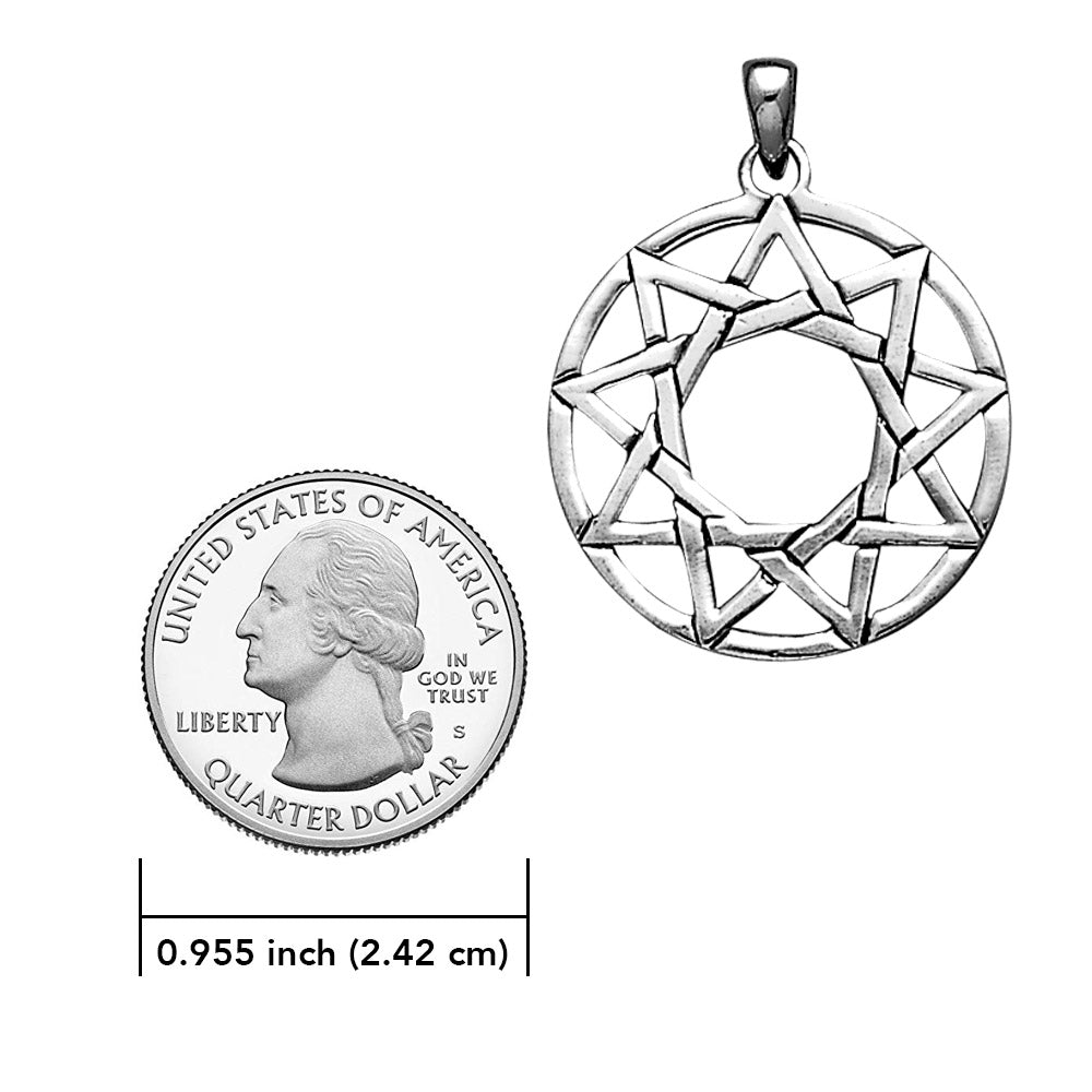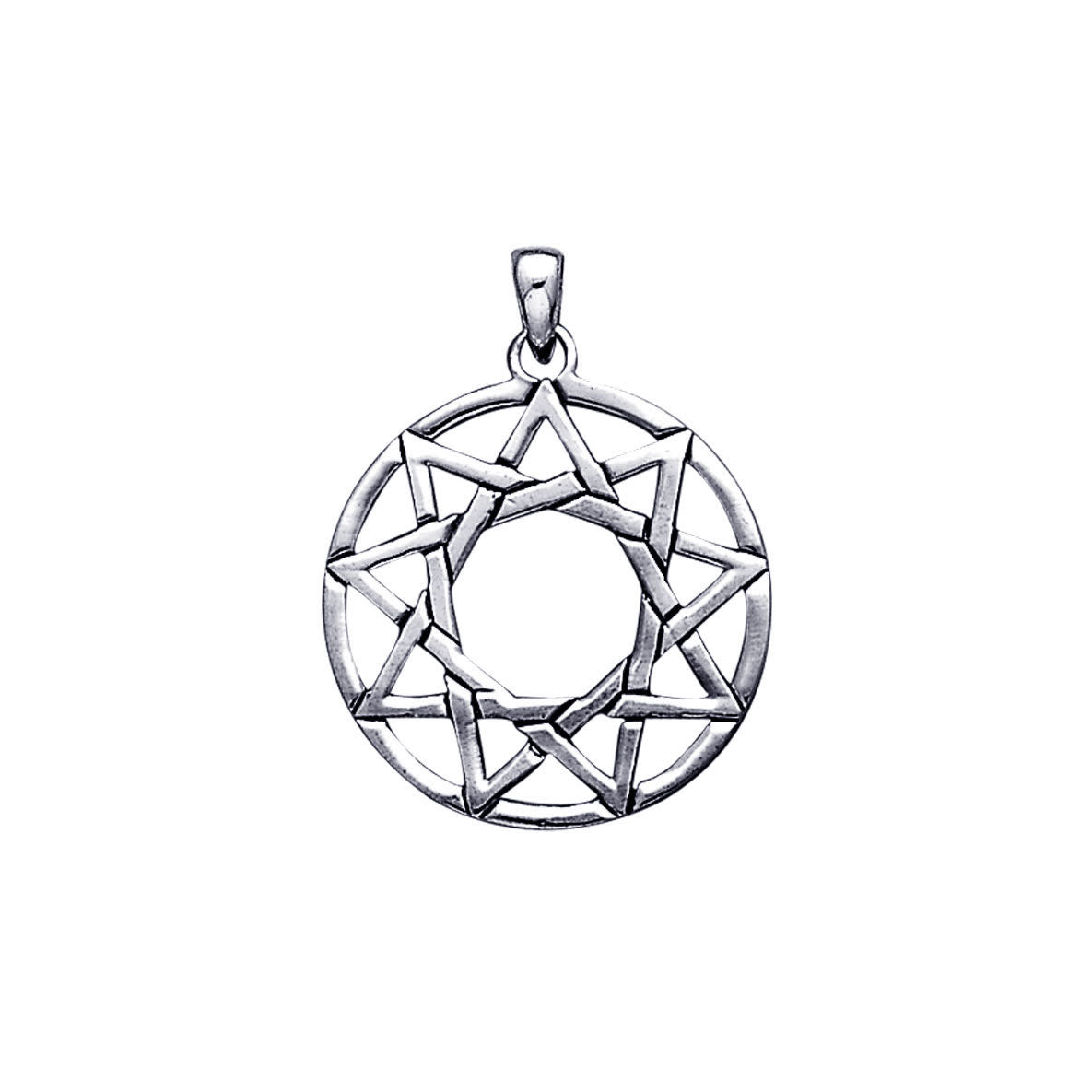 The Ninefold Sterling Silver Pendant is a stunning piece of jewelry that embodies elegance, mysticism, and sacred geometry. Crafted from high-quality sterling silver, this pendant features an intricate interwoven nine-pointed star enclosed within a circular frame. The ninefold symbol is often associated with spiritual enlightenment, universal balance, and esoteric traditions, making this pendant a powerful talisman for those drawn to mystical and symbolic meanings.