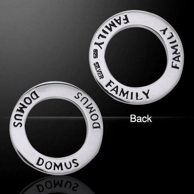 Meticulously crafted from fine sterling silver, the Domus Family Silver Ring Pendant features a detailed inscription and hand crafted quality from the world class artisans at Peter Stone.