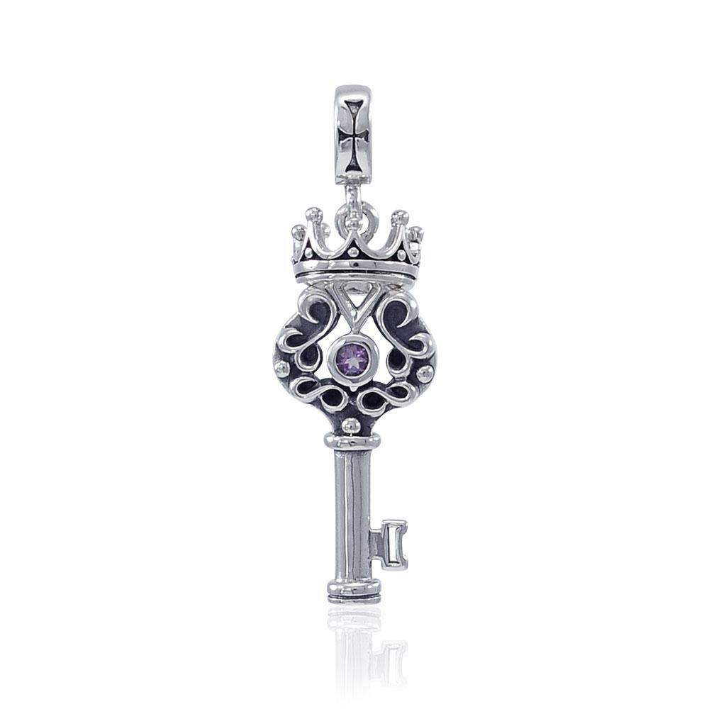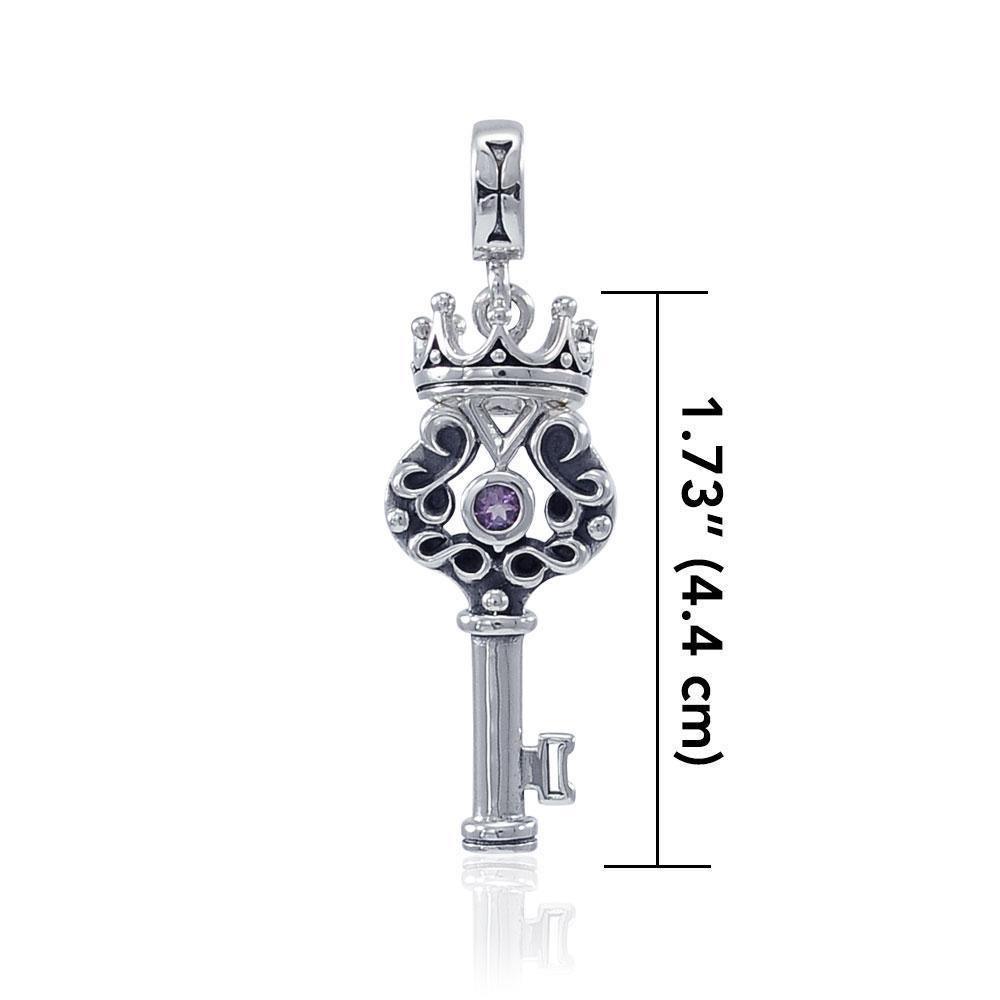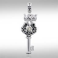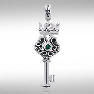 Crown Key Sterling Silver Pendant with Gemstone TPD3285