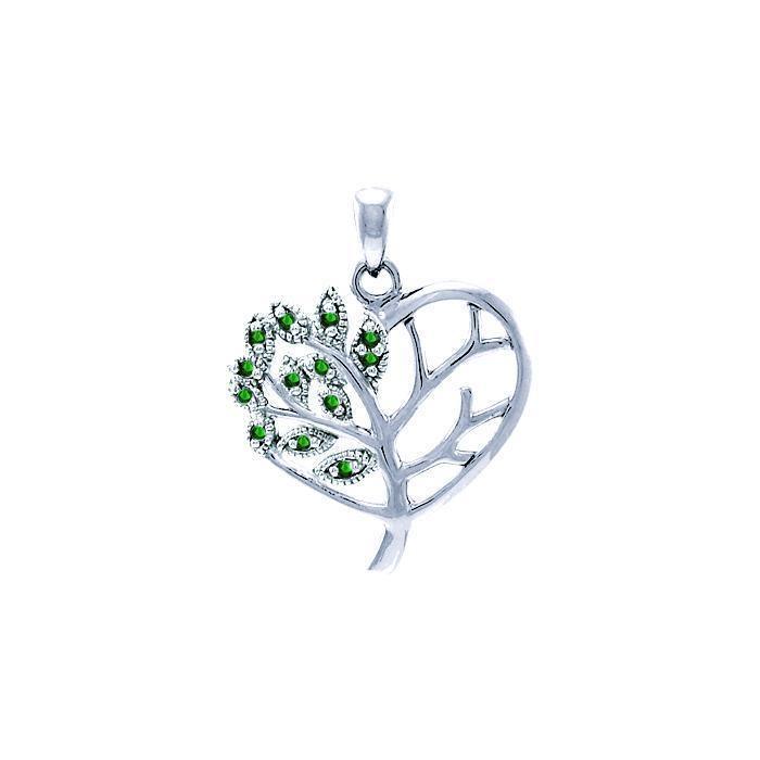 Tree of Life in Heart Shape Silver Pendant with Gemstones TPD3884