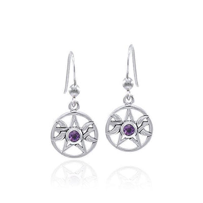 These sterling silver The Star earrings feature your choice of gemstone within the Triple Moon Goddess emblems woven through the star.