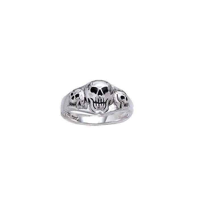 Triple Skull Silver Ring TR3756
