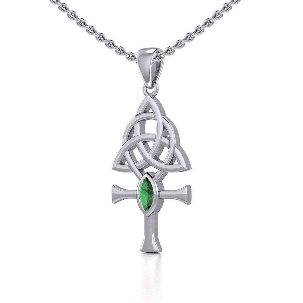 Triquetra Ankh Silver Pendant with Gemstone TPD5660