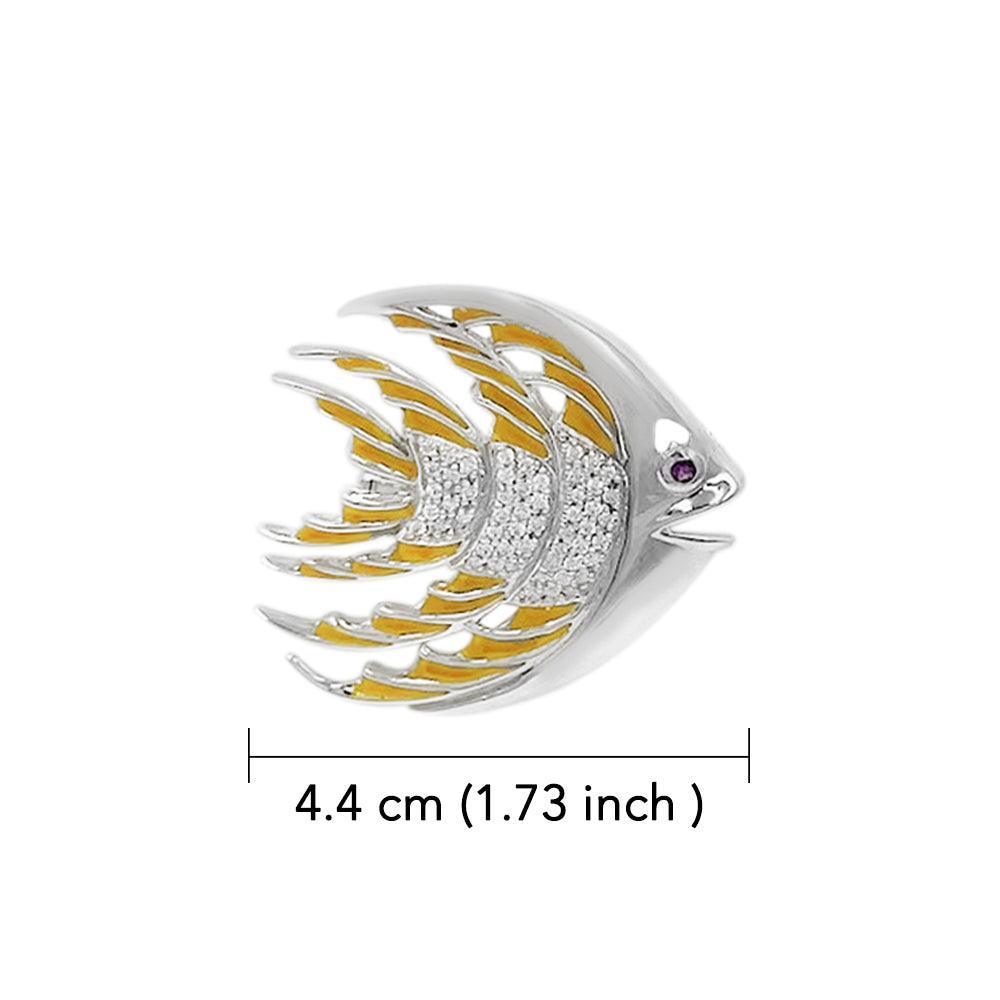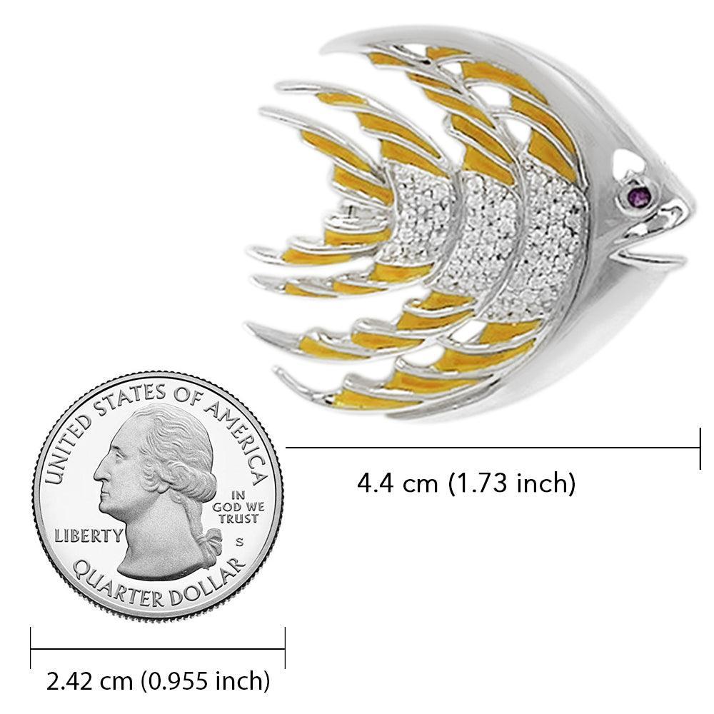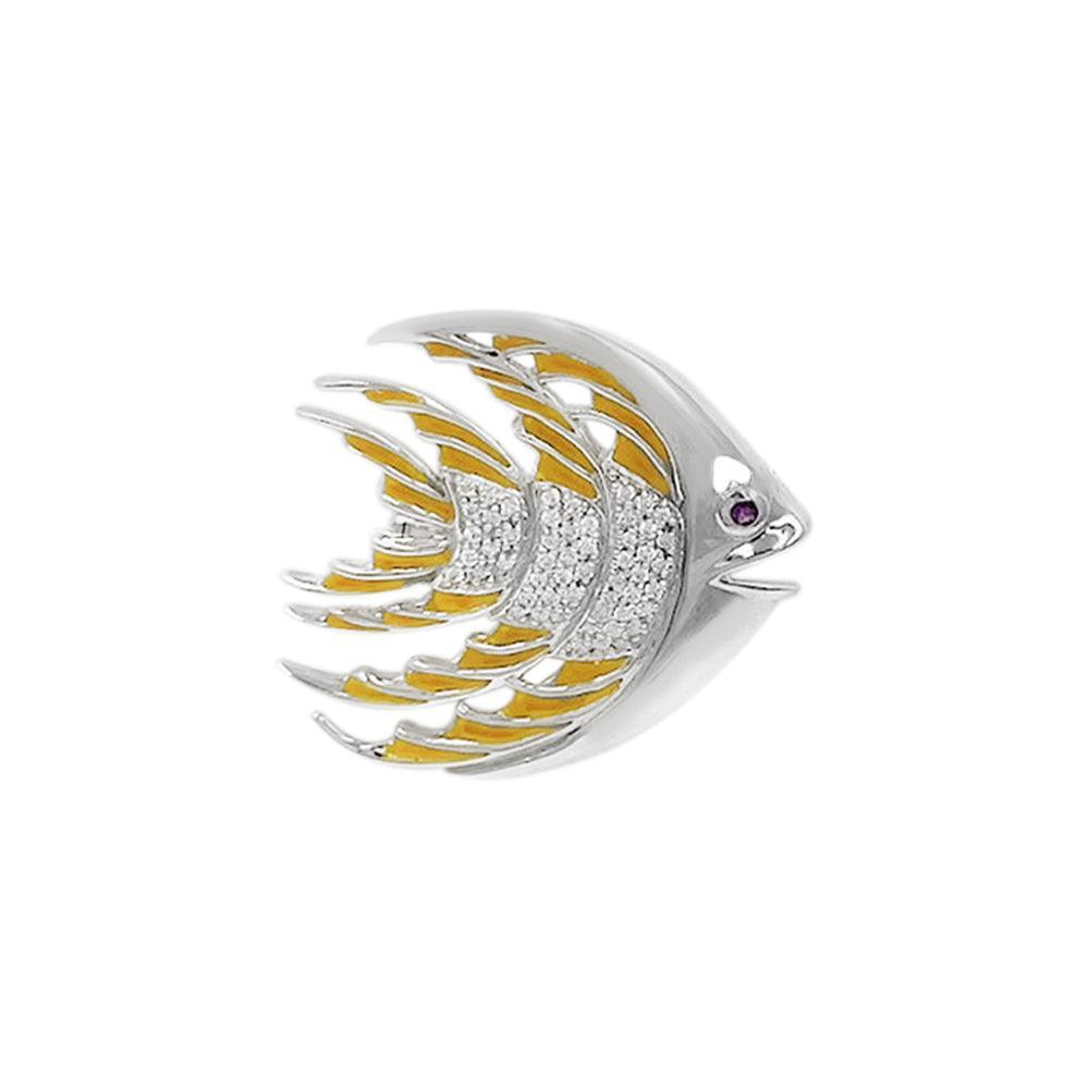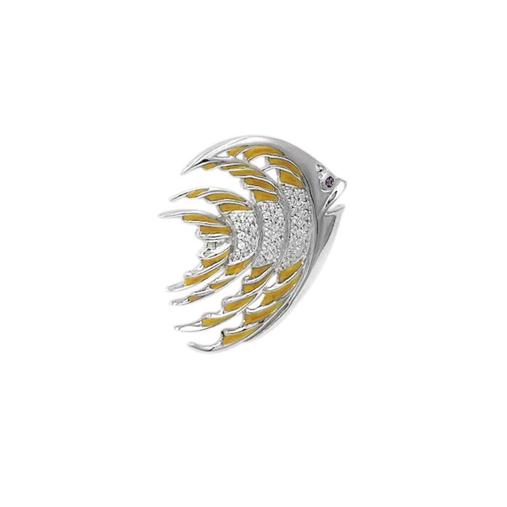 Tropical Fish Silver Brooch with Yellow Enamel TBR264