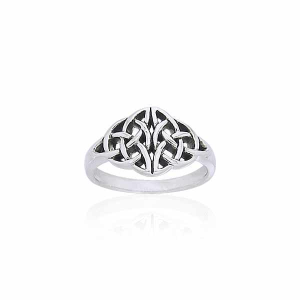 Two Celtic triquetra are mirrored in this slender, sterling silver ring for an element of refined and eternal symmetry.