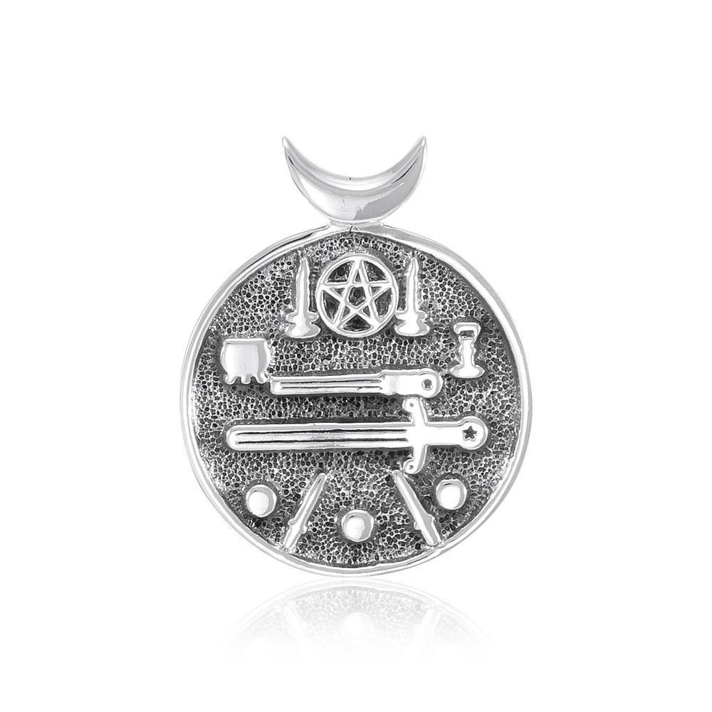 This magickal pendant empowers the wearer with its many Wiccan symbols.