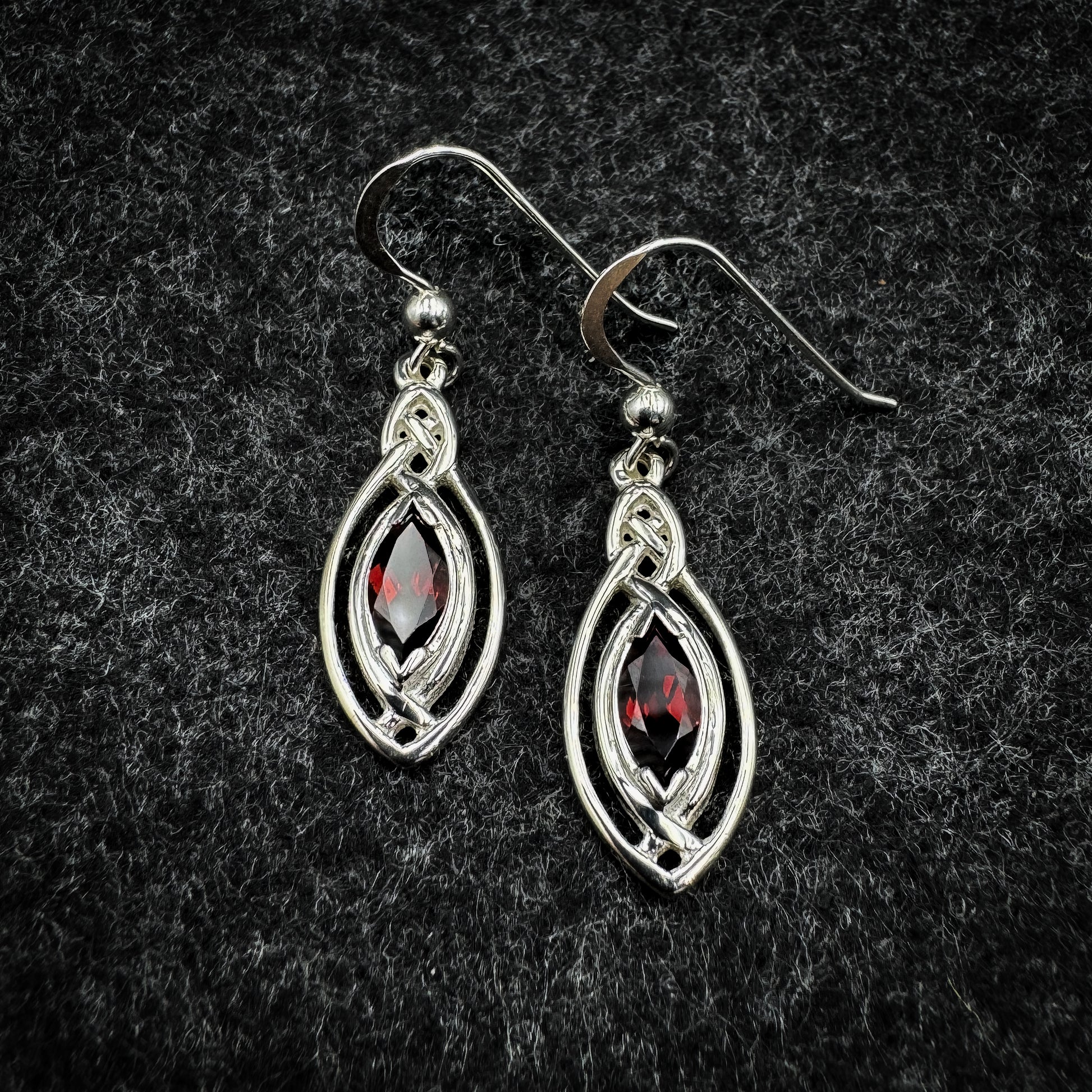 Elevate your style with these Celtic Knotwork Sterling Silver Earrings. Crafted with expertly intertwined knotwork and adorned with a beautiful gemstone, these earrings are a symbol of everlasting love and unity. Handcrafted with genuine sterling silver, they make for a timeless and elegant accessory, perfect for any occasion.