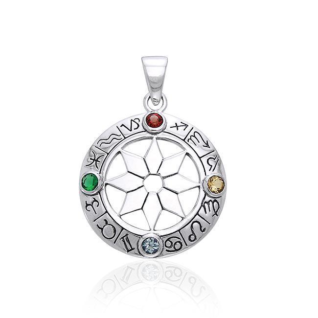 Zodiac Signs Silver Pendant with Mix Gems TPD827